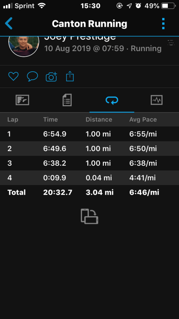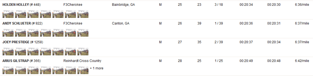 The event was held in River Park, and was busy! I came 28th overall, and 2nd in my age group (just losing a sprint finish with an orange shirted F3 guy, who ended up being the guy who, frustratingly, won my age group)! Reinhardt X Country Team* were there, and I beat some of them, which was great. The run was OK, but I Felt heavy, and really should have warmed up more, or better. Time was 20.28, a new PR.
