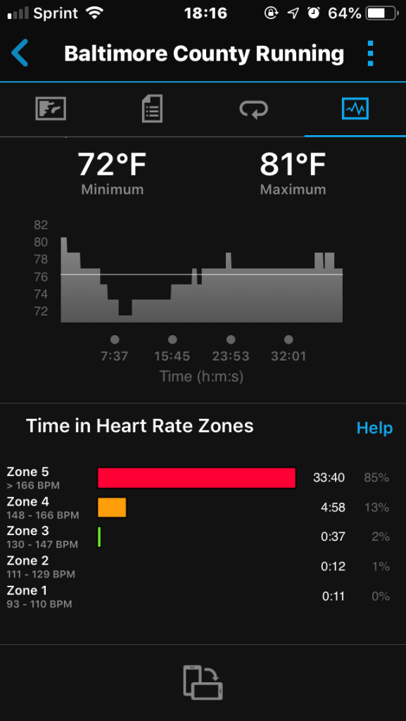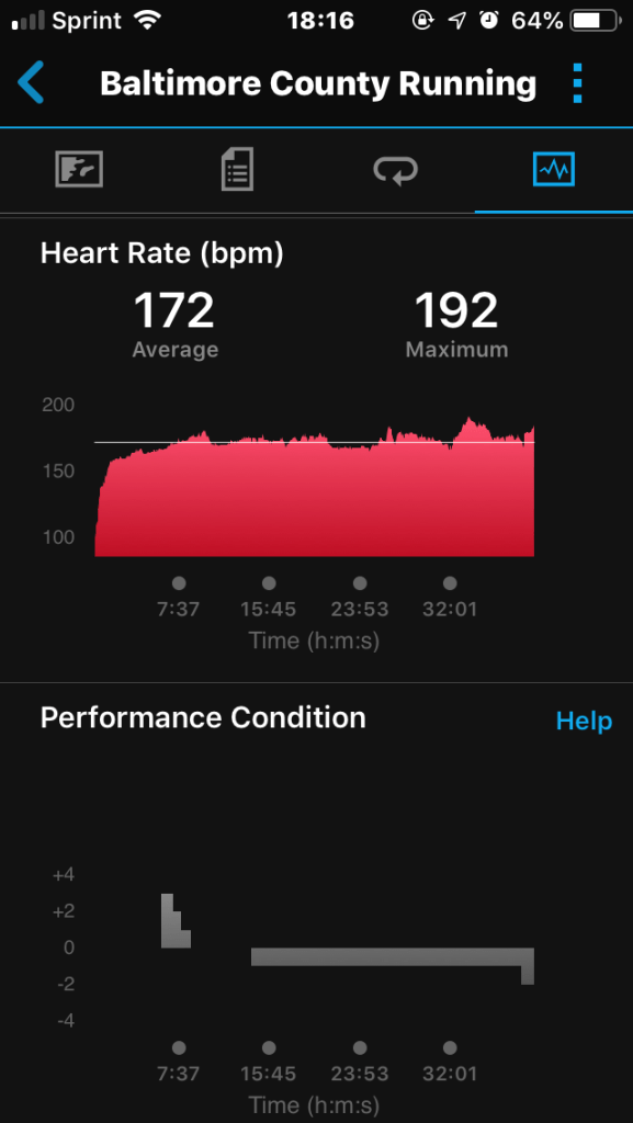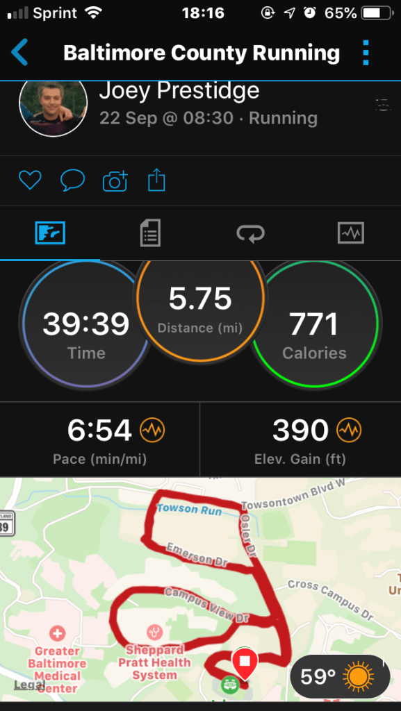After exploring Mountainside and surrounds, I drove on to Baltimore, MD, for state number two of the weekend. Three hours and some podcasts later, I arrived in Towson, and picked up my race packet from a student bar. I then headed to my chosen place of rest – the Comfort Inn, East Towson. Not a hotel that would have been high on Becca’s list…