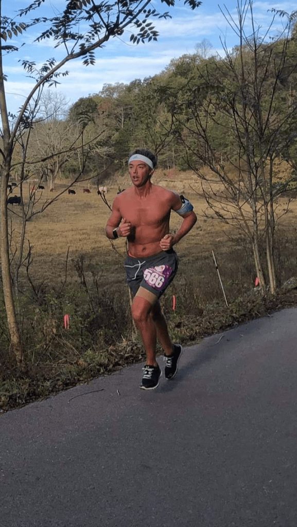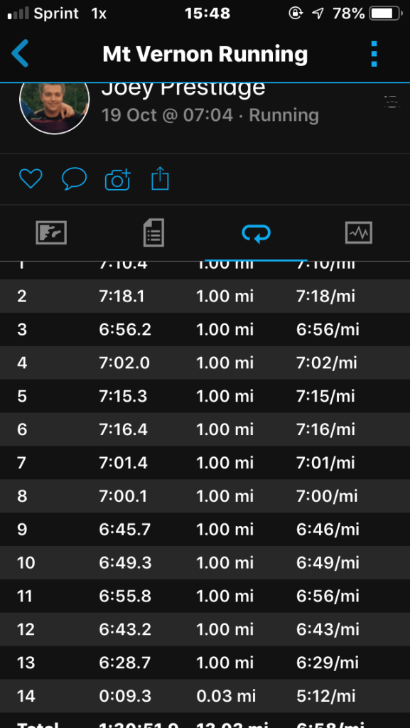 The race was good, rolling to hilly in places, and I trailed an older bearded guy for most of it. It was a spidery course but basically we went out and back then out and back the opposite direction. Lots of good aid stations – but I was carrying two Maurten 320 gels anyway. I discarded my T shirt at the half way point (pretty much where we started) and placed 2nd overall, 1st in age group. Again, I really felt that listening to music all the way round helped, and I ran 1.30.51.