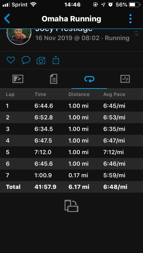 The Turkey Trails 10K wasn’t actually a trail run – it was all on asphalt & concrete. But I’d figured this out in advance so it wasn’t a surprise! It was an out and back lollipop 5K course, looped twice to make a 10K. There was lots of goose droppings to avoid and always a lot of runners to avoid, too, because of the nature of the race – out and back, two loops, 5K & 10K going simultaneously. It was a bitingly cold morning, and the Arctic wind really swept in off the river and made running a real bitter struggle at times. I was wearing my new Zoom Fly running shoes, but the laces came undone half way so that made me stop briefly, as I had to tie them back up with my numb hands. I will be looking into running gloves and what other lace options are out there, shortly!