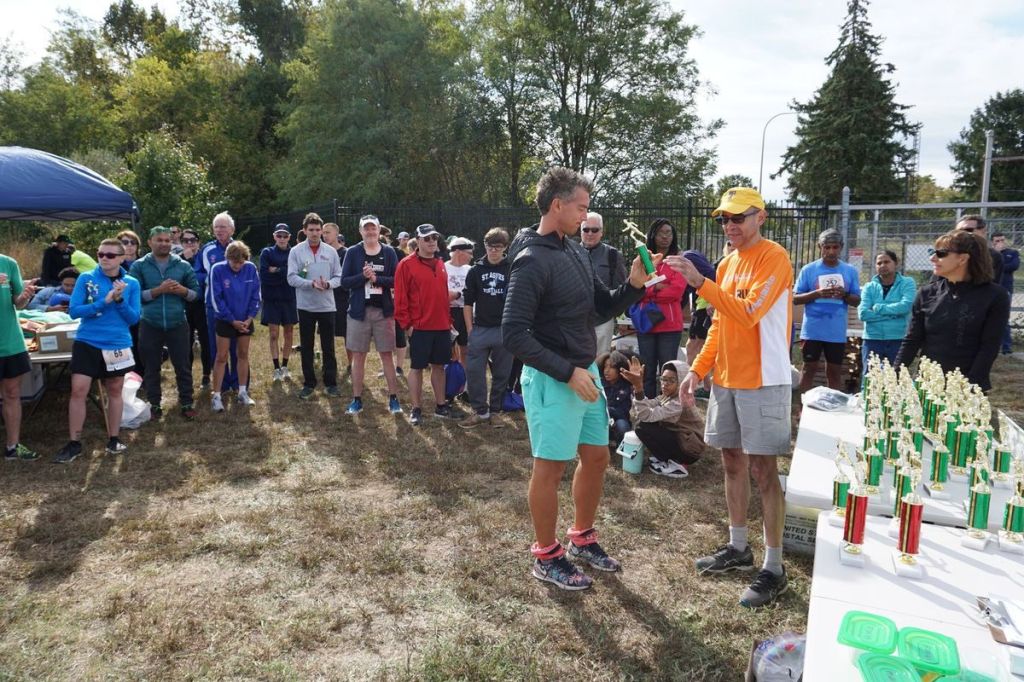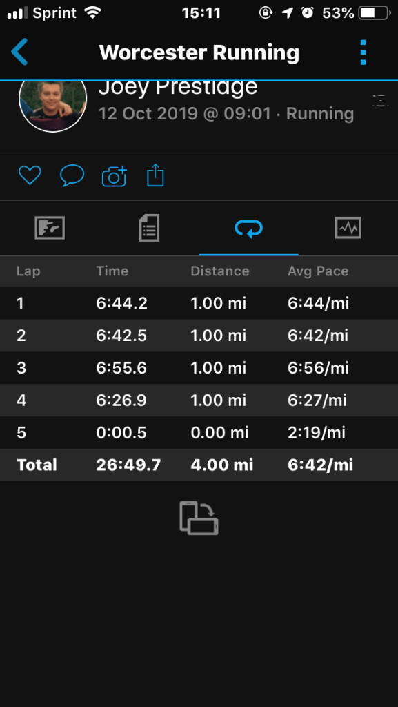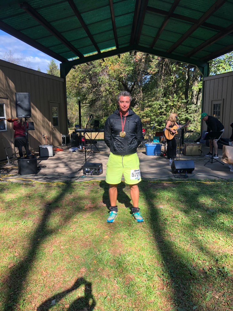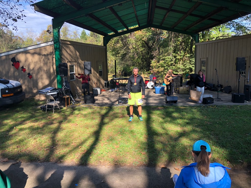 The race was good – I placed 2nd overall – and was presented with a hand made medal, Starbucks & WaWa vouchers etc. It was 2 x 2 mile laps, mainly on thickish grass, with lots of free food and drink at end. The guy who won it went out fast and I just couldn’t catch him, fair play to him.