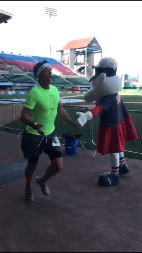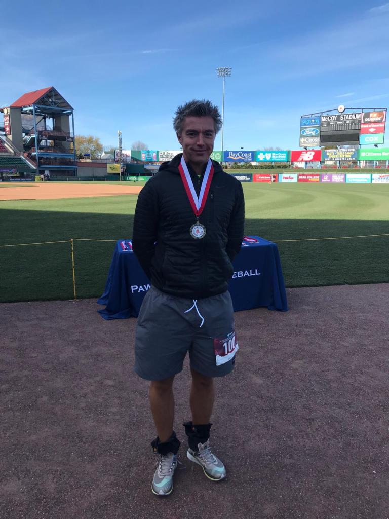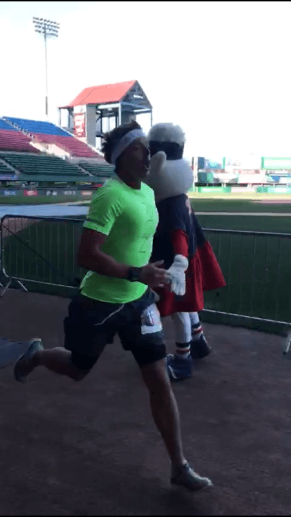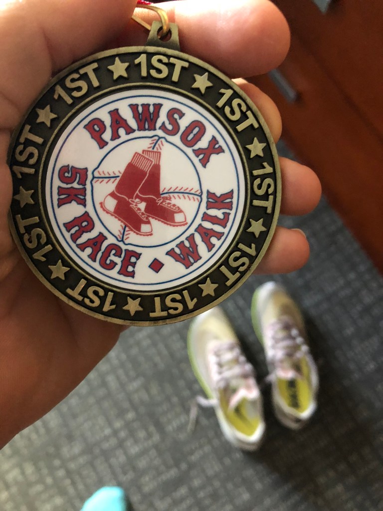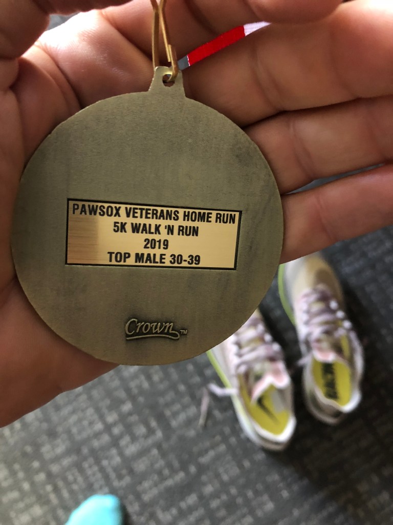 First up was Rhode Island and the Pawsox Veterans Home Run 5K in Pawtucket. I flew into Providence after work on Friday and met Becca, who had been in NYC & Boston with work the latter part of that week. We stayed in a nice hotel in downtown Providence then headed out to the race, at the Pawsox baseball stadium, early Saturday morning. It was very cold – I even warmed up in gloves, but I think the temperature helped regulate my core and I actually ran a new PR (18.24) and placed 5th overall, 1st in 30-39 age group. The race finished with a loop around the baseball outfield and Becca was there to see me come in.