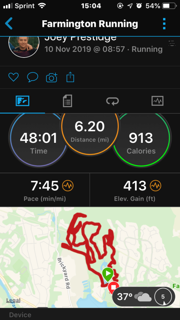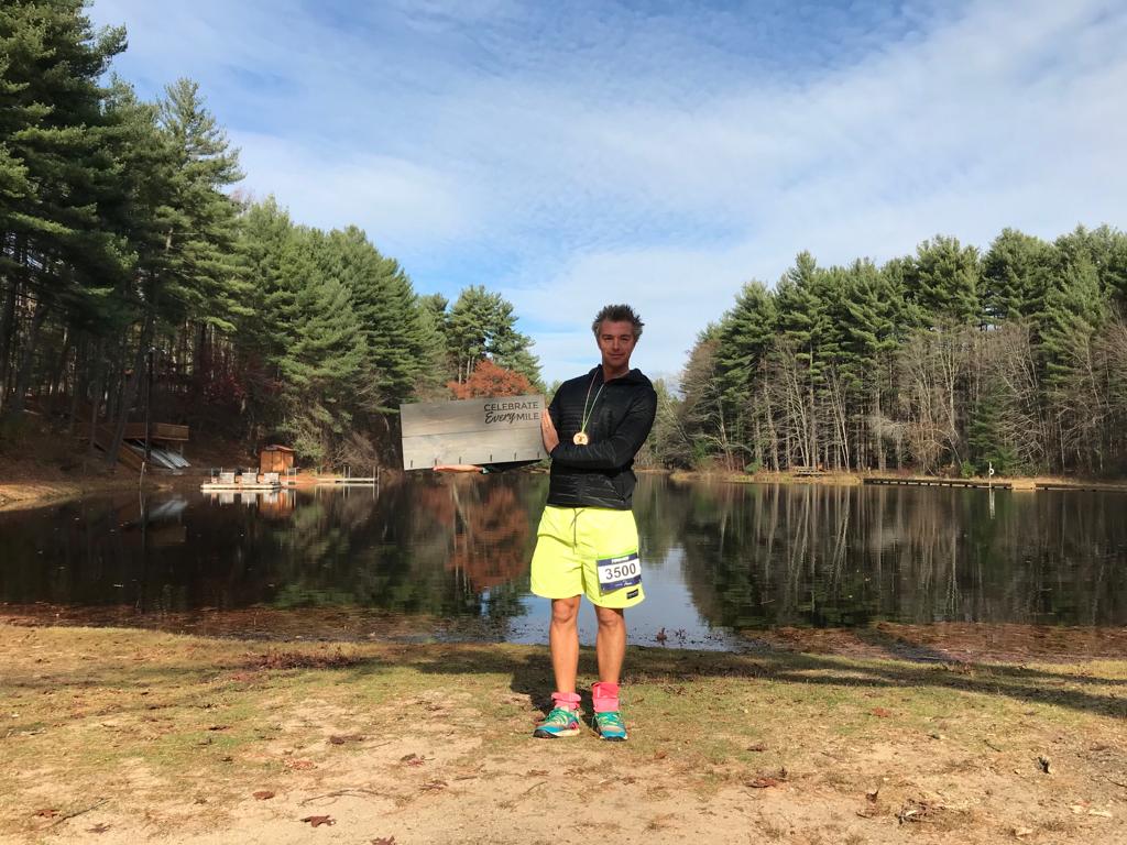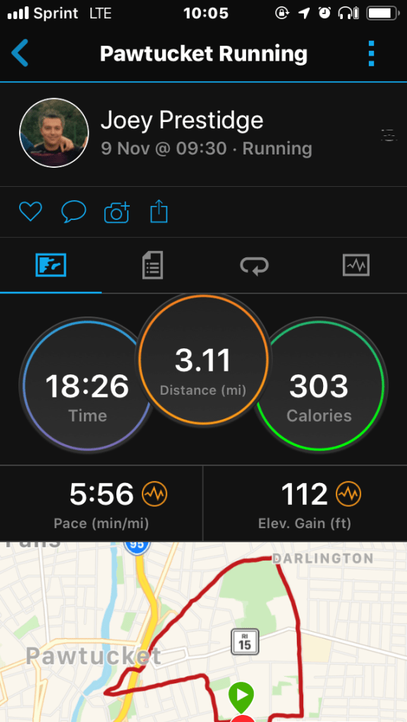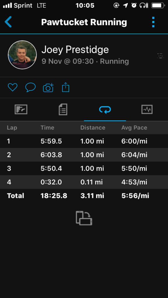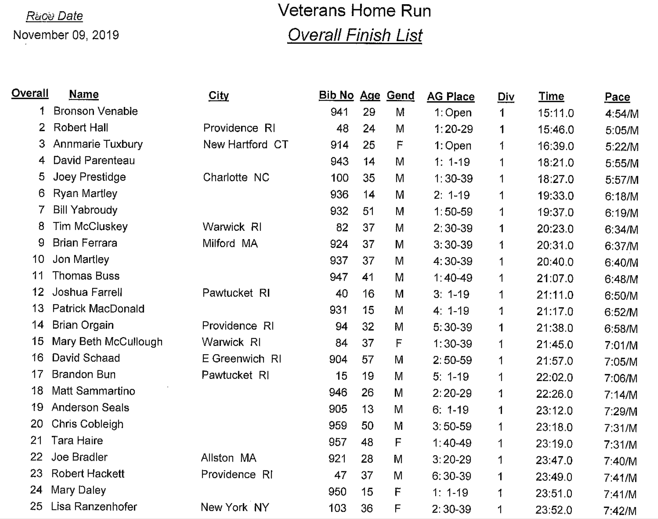 First up was Rhode Island and the Pawsox Veterans Home Run 5K in Pawtucket. I flew into Providence after work on Friday and met Becca, who had been in NYC & Boston with work the latter part of that week. We stayed in a nice hotel in downtown Providence then headed out to the race, at the Pawsox baseball stadium, early Saturday morning. It was very cold – I even warmed up in gloves, but I think the temperature helped regulate my core and I actually ran a new PR (18.24) and placed 5th overall, 1st in 30-39 age group. The race finished with a loop around the baseball outfield and Becca was there to see me come in.