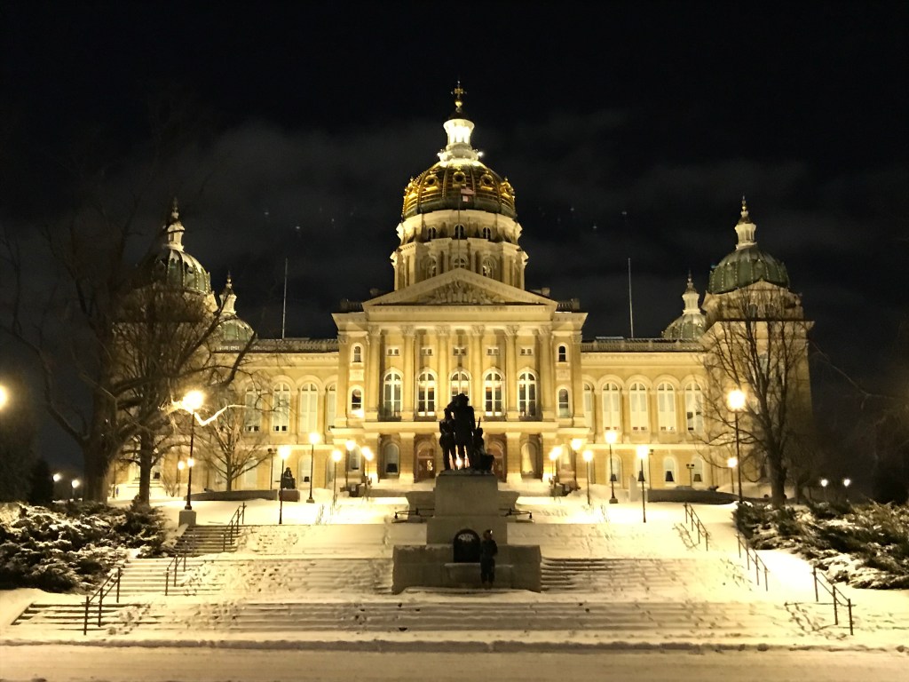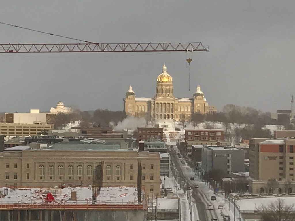 Below is our view from the hotel, of the Iowa State Capitol Building, and some photos from up close when we went to look around the impressive building itself, upon returning from our adventures in the park.