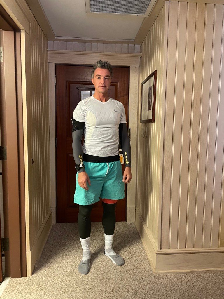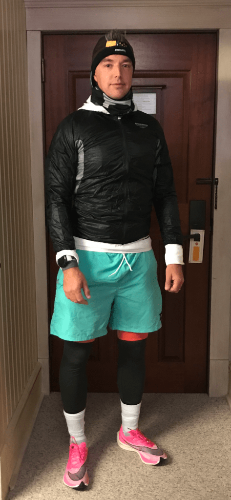 I breakfasted in the room on pistachios, fruit and cereal bars that I had brought with me, and began to get ready. I had come prepared – indeed, getting ready for this race had taken some planning!