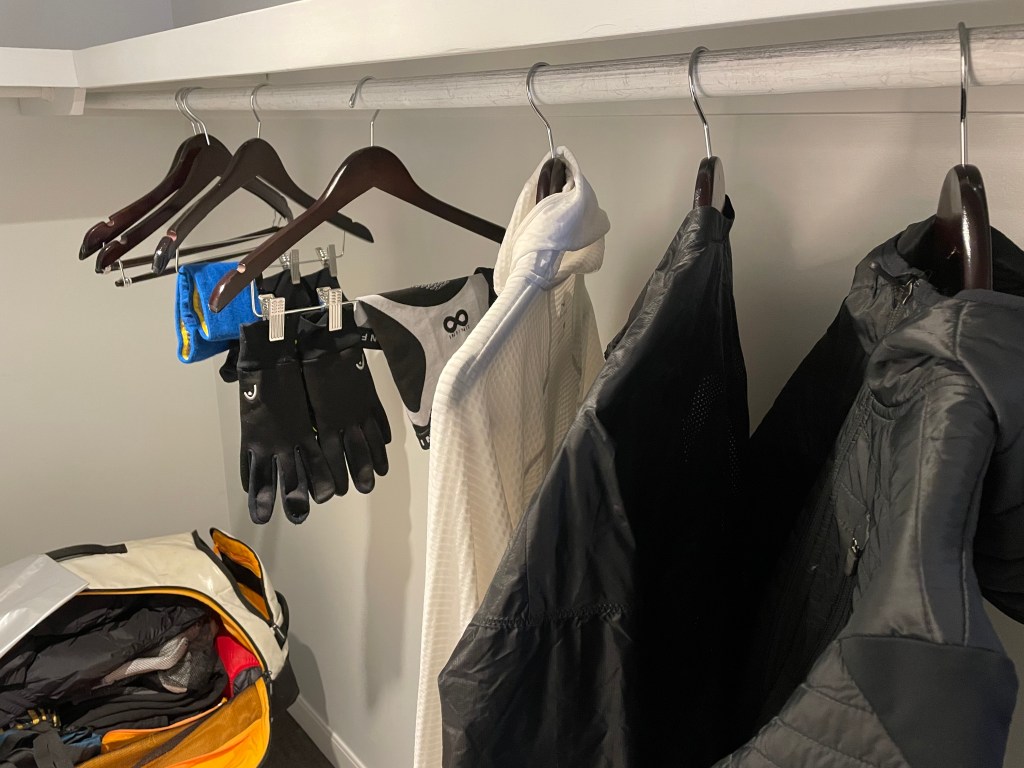 I set some of my running items to dry off in the hotel room –