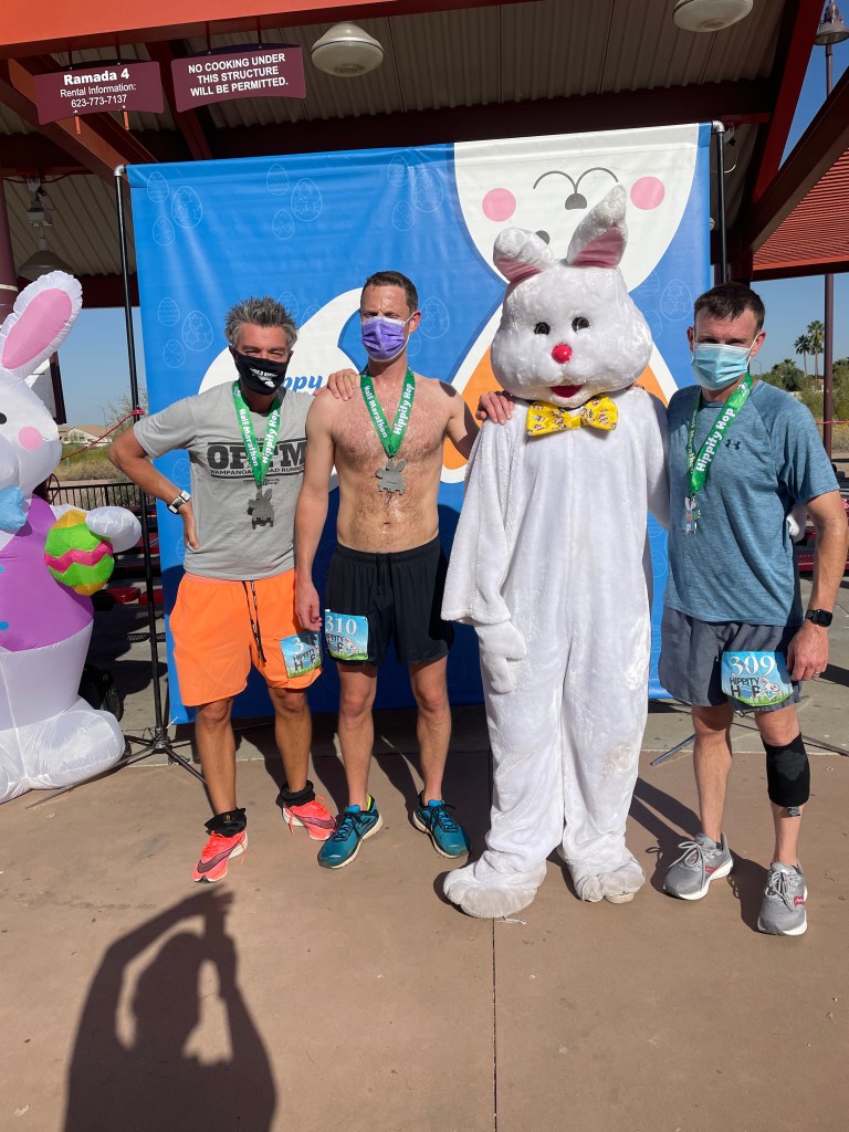 The long Easter weekend presented a great chance to get away for a race. This time it worked out as a trip with friends from work. Four of us flew into Phoenix on Good Friday, picked up the car & grabbed some Mexican for lunch, before checking in to our Air BnB in Peoria, just north of Phoenix. We ordered in some pizza whilst we watched the classic westerns channel, and got an early start the next morning for the Hippity Hop Half Marathon race.