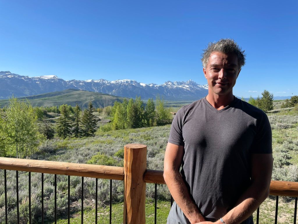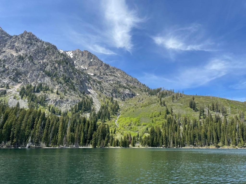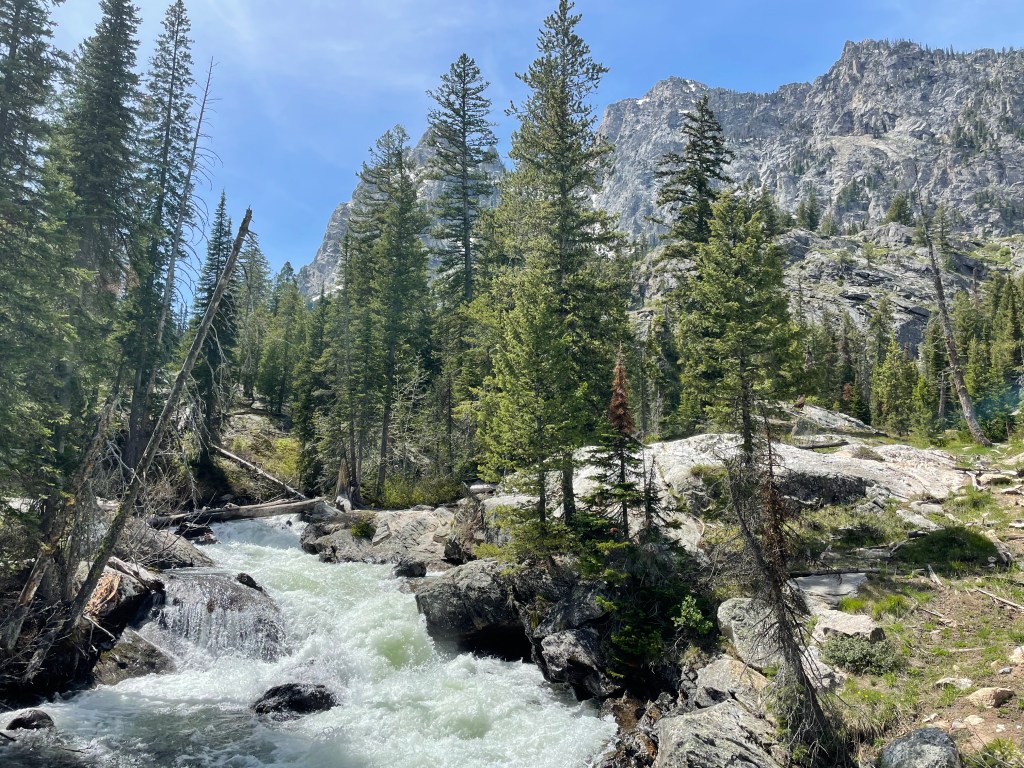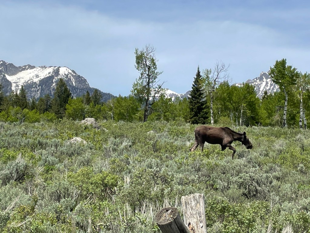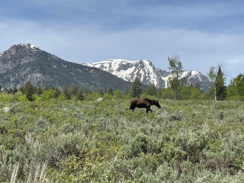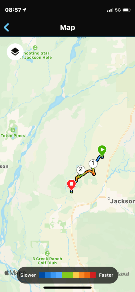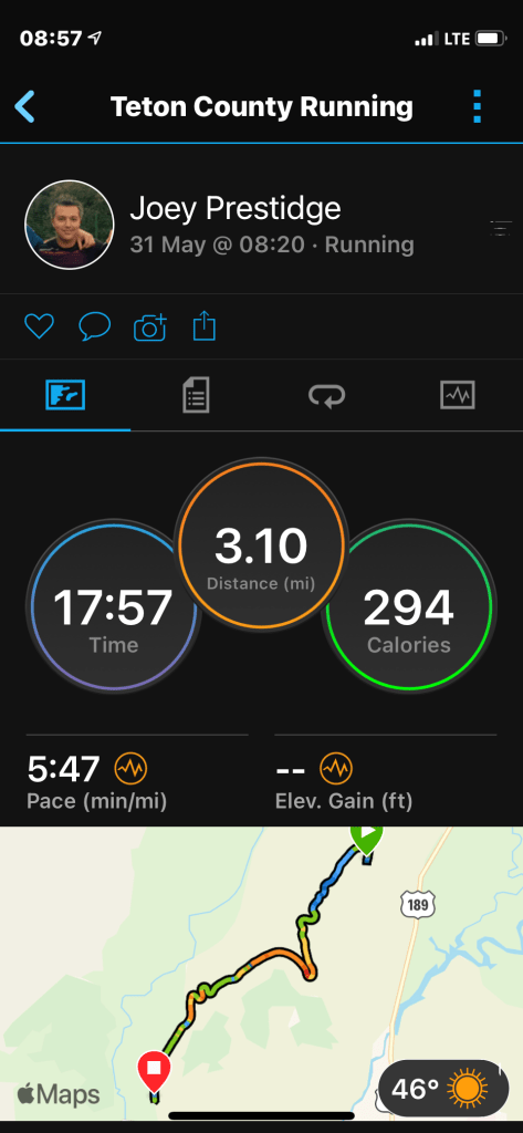 I ran early the next morning – such a beautiful setting – a warm up 1 mile, then a downhill 5K, from the top of the resort road, all the way down to the main road. I broke 18 minutes with this, running a 17.57, a new PR. Even downhill, I felt it was pretty good going considering the altitude, sore legs from the big race yesterday, shin splints, no Vapor Flys, and even an annoying stone in my shoe – which gave me a bad heel blister. I did a quick gym session before a nice breakfast, and all heading out to the Teton National Park.
