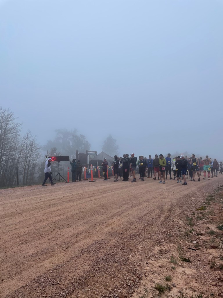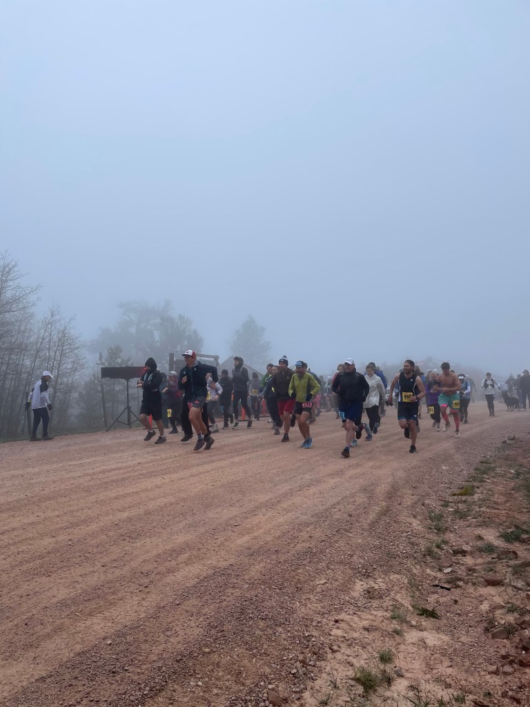It was misty at 9000’ where we started, and the course proved long at about 13.5 miles. There were about 100 runners, but some were doing the 50k or the full. The half was an out and back, with over 1100’ of climb, most of which came in the last 4 miles. The high elevation made breathing tough and pace slow, especially going uphill, where it felt like my lungs and heart were about to explode.