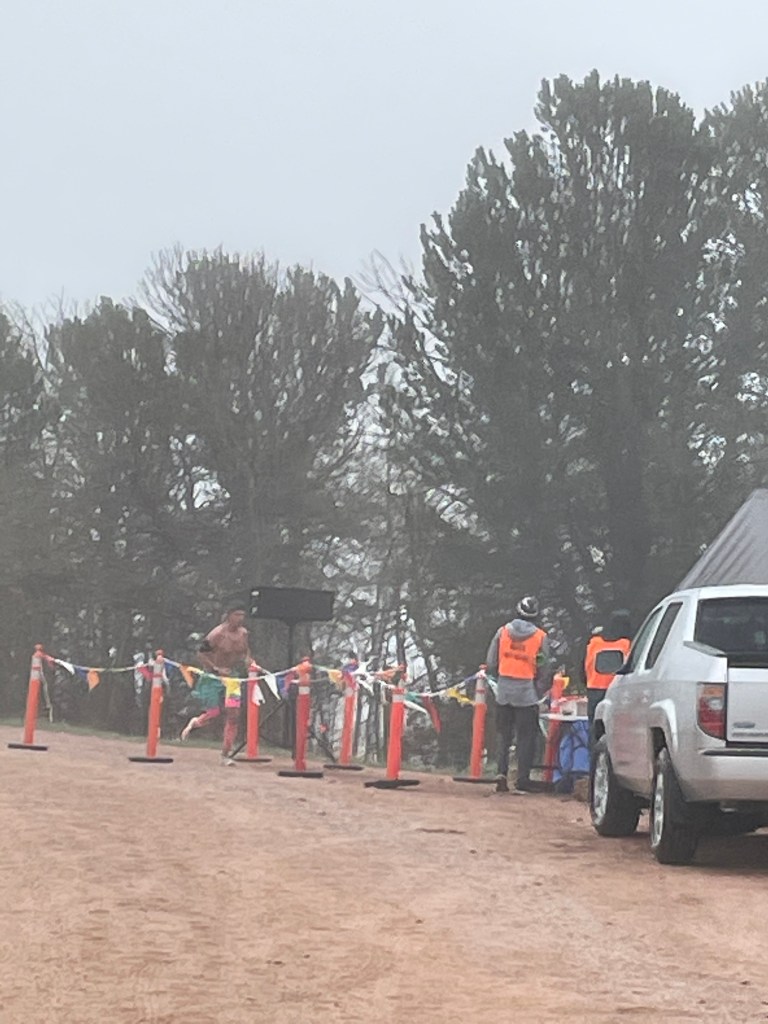 I’d worn a pair of Zoom Fly 3s, and that was probably about right for the surface. It was all trail, some soft dirt/gravel (which was particularly troublesome as the light rain started about half way through the race), a few rockier sections, and plenty of washboard style ruts running across the trail. There were also plenty of pretty extreme cattle grids to traverse! All in all, not crazy, but not straightforward either.