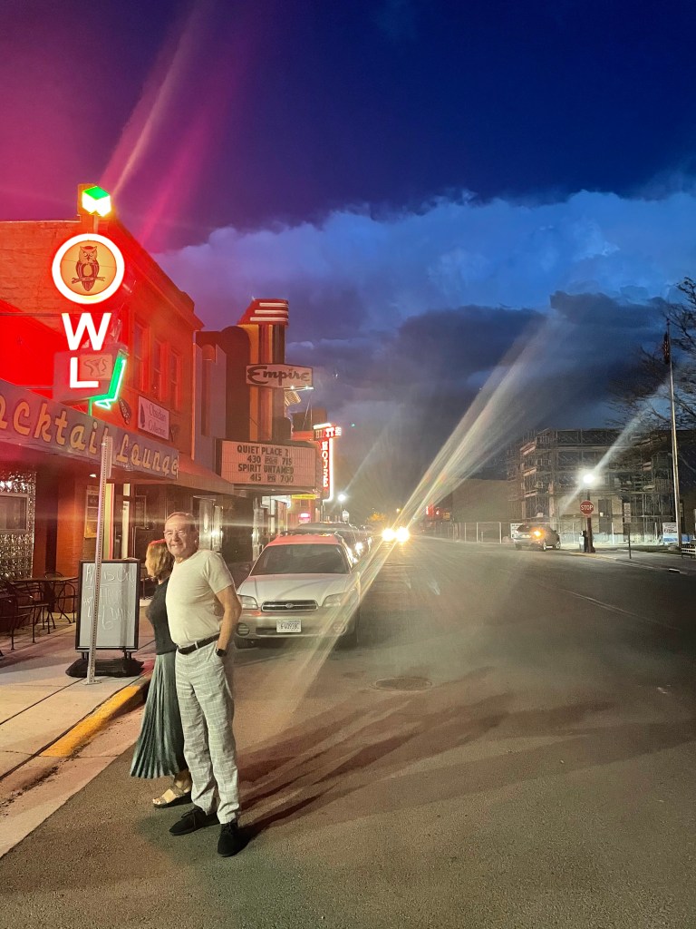 We went out for drinks at the Front Street Tavern that afternoon/evening, then Pizza at The Crow Bar & Grill. Laramie is a sleepy western town, eclectically mixing traditional modern frontiersmen of the west, with “alternative” student types from Wyo U. The former driving trucks, wearing work clothes, and being tough, traditional, local men of purpose and tradition. The latter wearing masks on their unnecessary trip to the bar, to show their superior understanding of science.