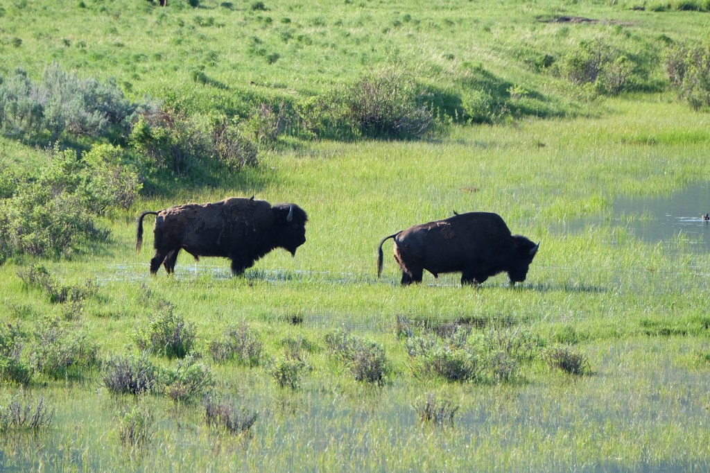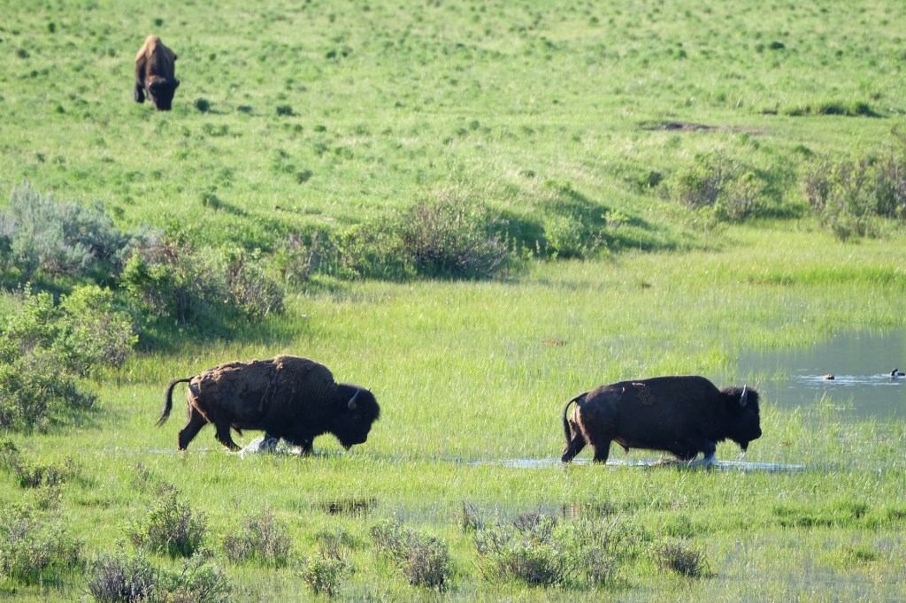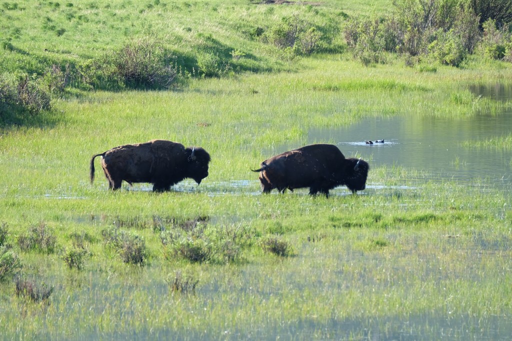 We visited various parts of the park, saw a wolf, elk, deer, bison, a grazing female moose and some fantastic beaver activity, before heading back to the ranch for bed.