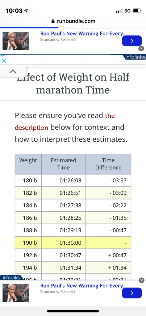 This also started me thinking about times, and running, and led me to read more about how weight can affect such times –