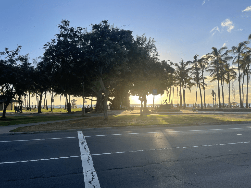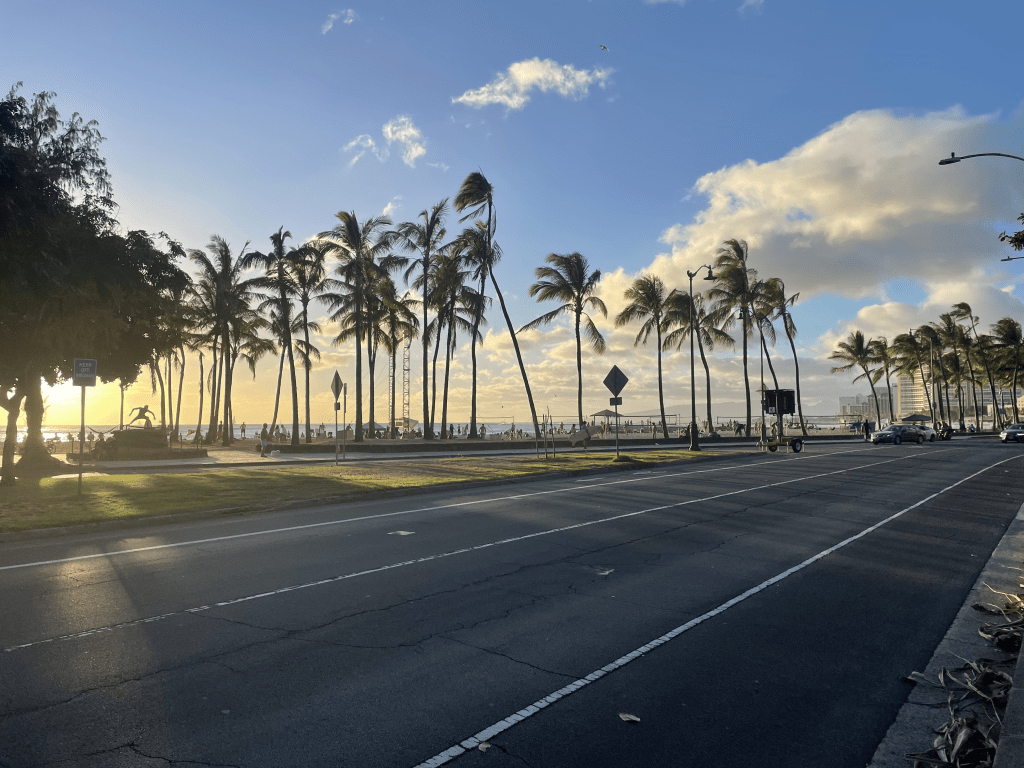 Waikiki was beautifully sunny and warm but there were lots of homeless people, and plenty of the sort of people you would expect to see in tropical American beach towns.