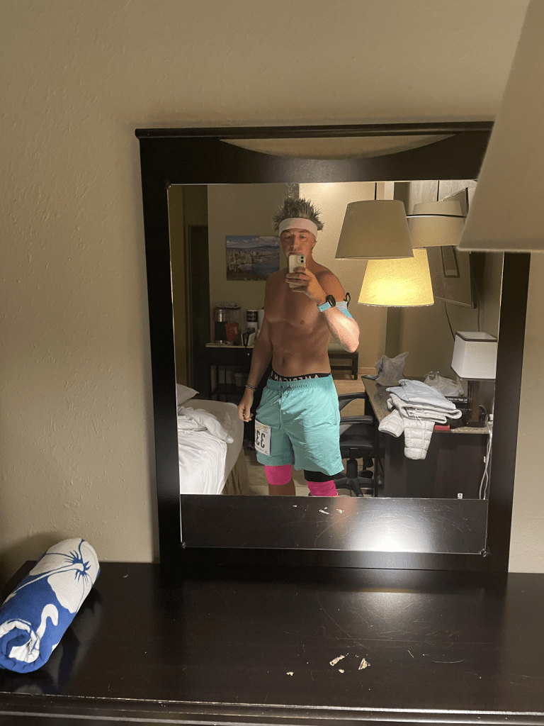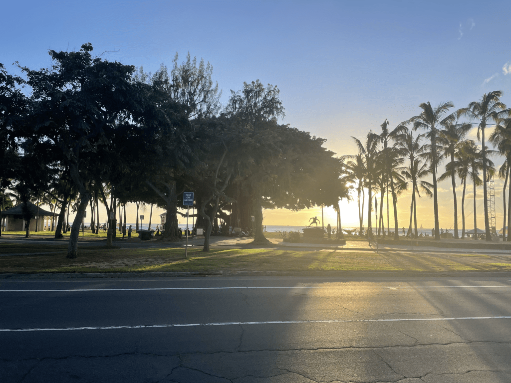 It was a nine hour flight, So I watched a lot of films. There is also a six hour time difference between Charlotte and Honolulu, so it was around 1500 when we touched down on the sunny tarmac. All passengers had to navigate the Vaccine police on our way in, but with that completed, I ordered a Lyft and headed to the Air BnB via a packet pick up stop in the Running Room store itself. I grabbed the packet, and upon arrival at the Air BnB address, eventually realised it was a small apartment within the Waikiki Grand Hotel. I settled in and picked up some provisions from the ABC next door, before wandering along the coastline, and through the park, to figure out where the start line was for Sunday morning’s race (near the tennis courts).