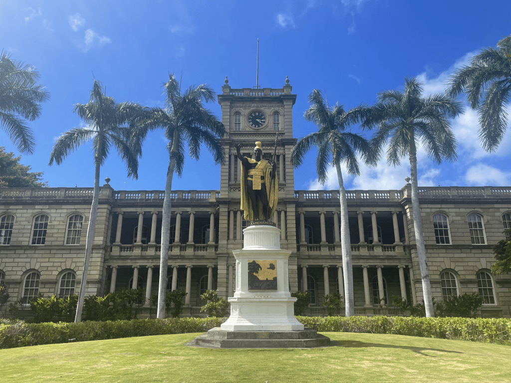I took a Lyft (with fascinating local historian driver) to Iolani palace and took a self guided tour around this former palace of the Hawaiian Royal Family – before they were deposed by local greedy business men with the help of the US government. Classic.
