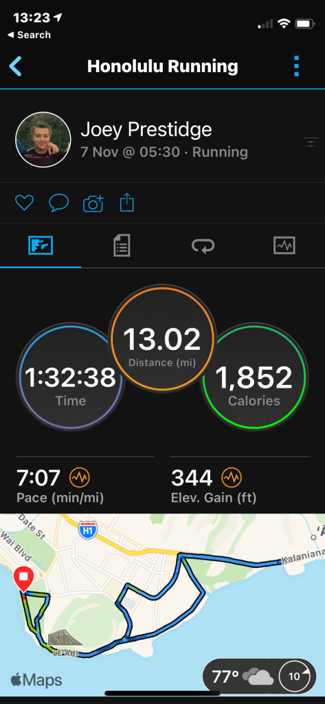 This 49th state was a case of third time, third island, lucky. I had the Maui Ocean Front half marathon booked…cancelled in reaction to COVID. Same with Kauai Sugar Mill Half (which was actually due to take place next weekend), but the good folks of Honolulu’s Running Room did stick to their guns, and came through to host the 808 Val Nolasco Half.