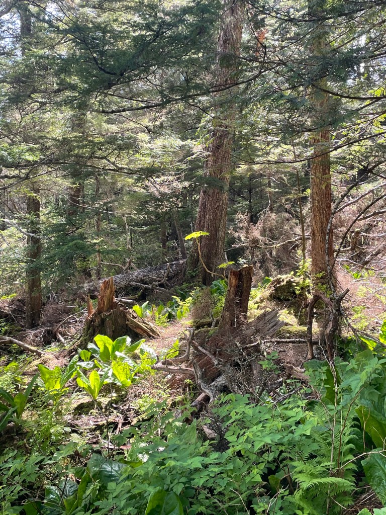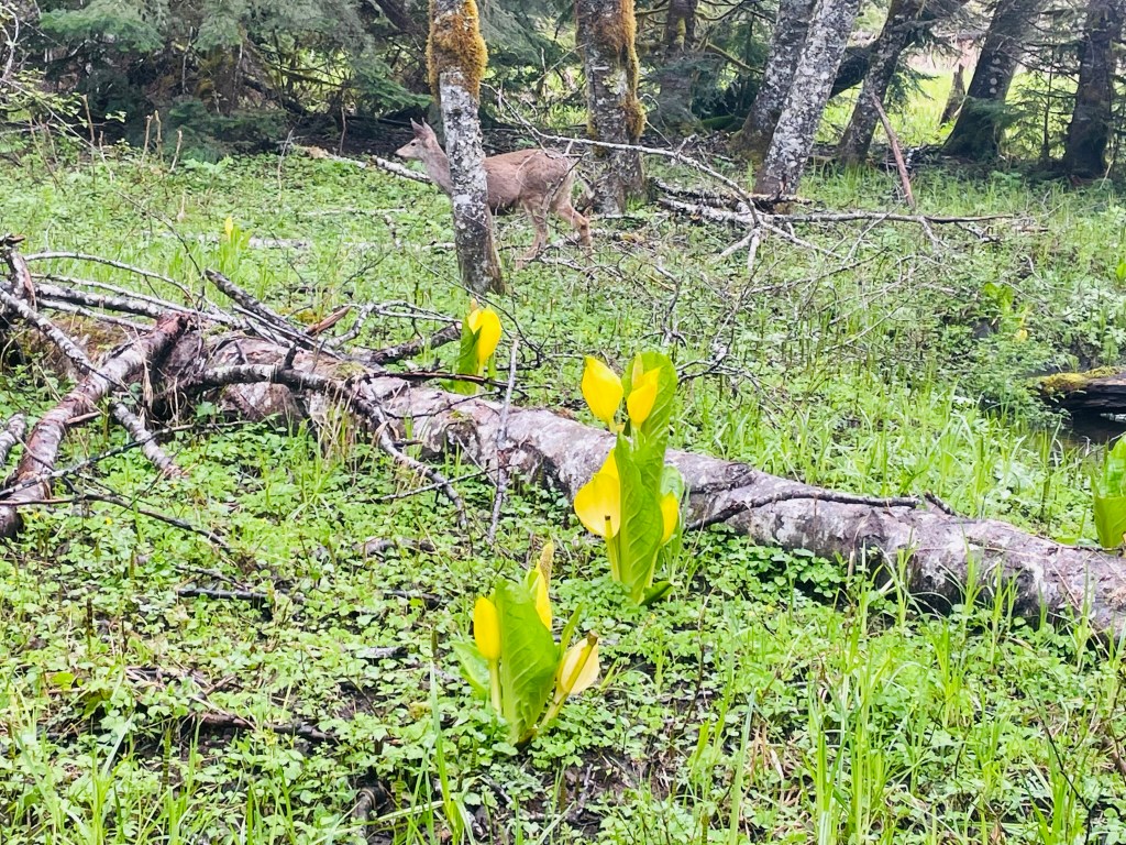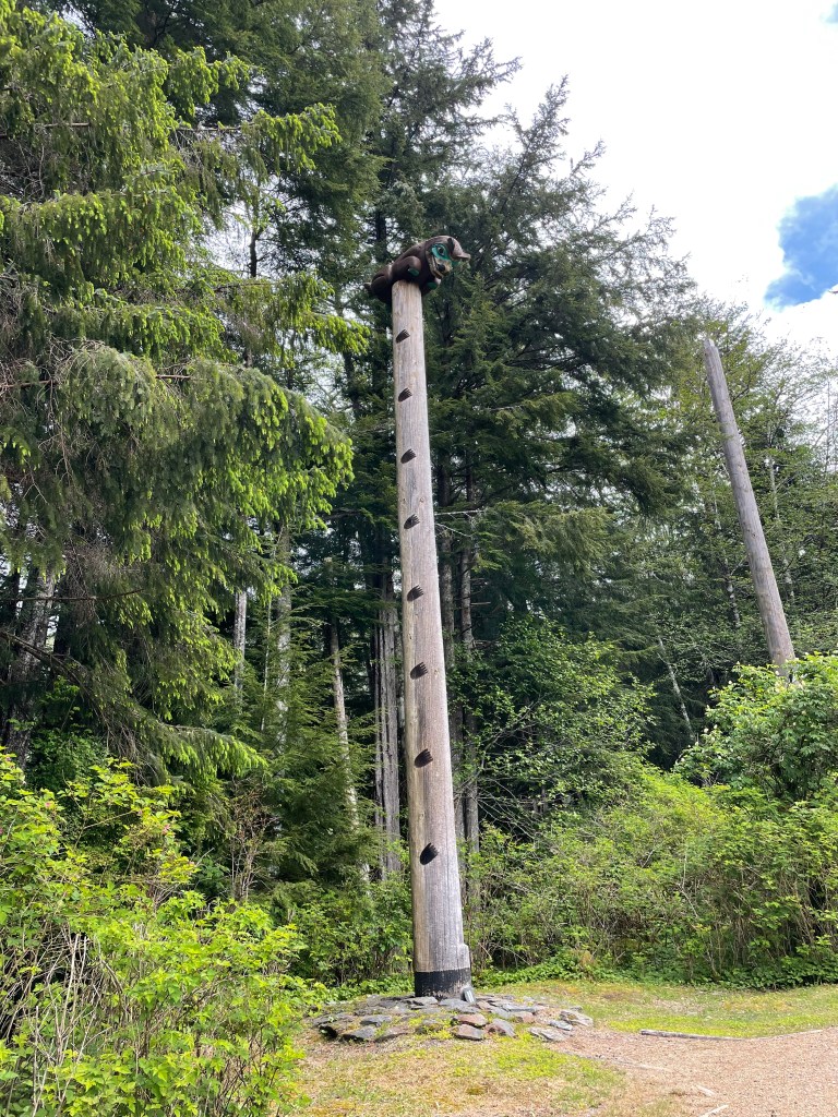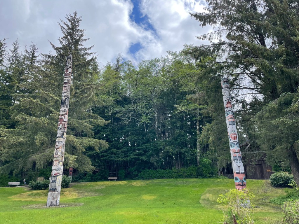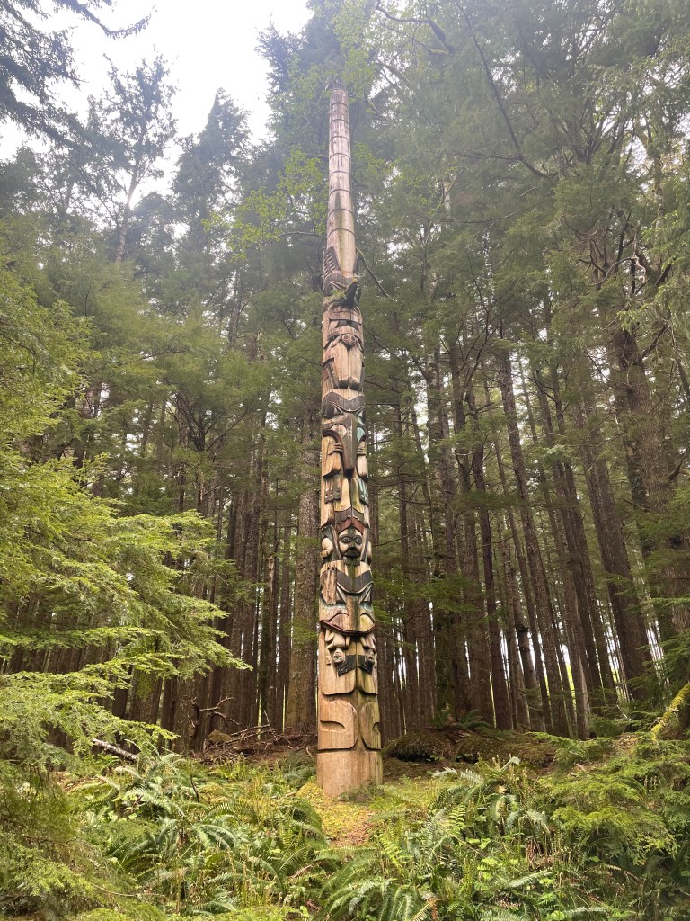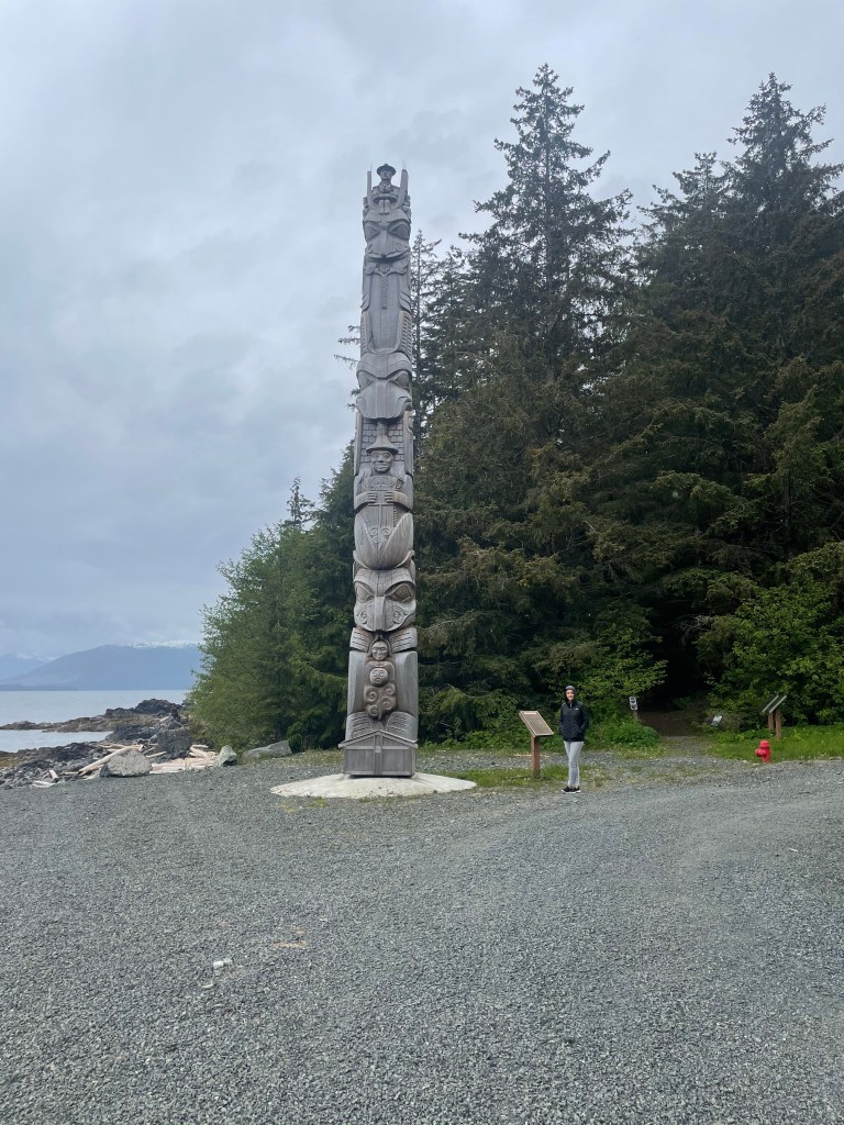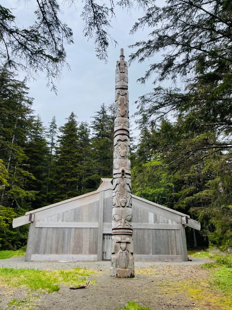 We then stayed on the back roads, and made our way to the tiny Native Alaskan village of Kasaan. We viewed more Totems, and went on the beautiful forest trail to the US’s only remaining Haida Whale House. We then made our way back to Craig and picked up Groceries for making tea at home, after calling in to Craig High School for race packet pickup.