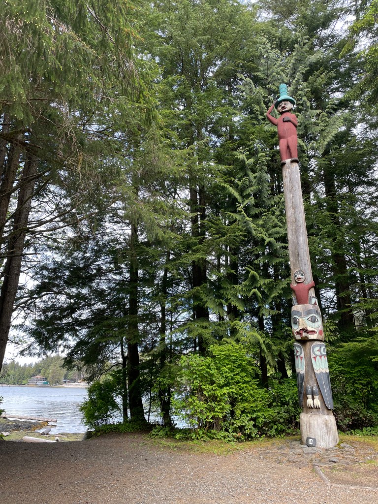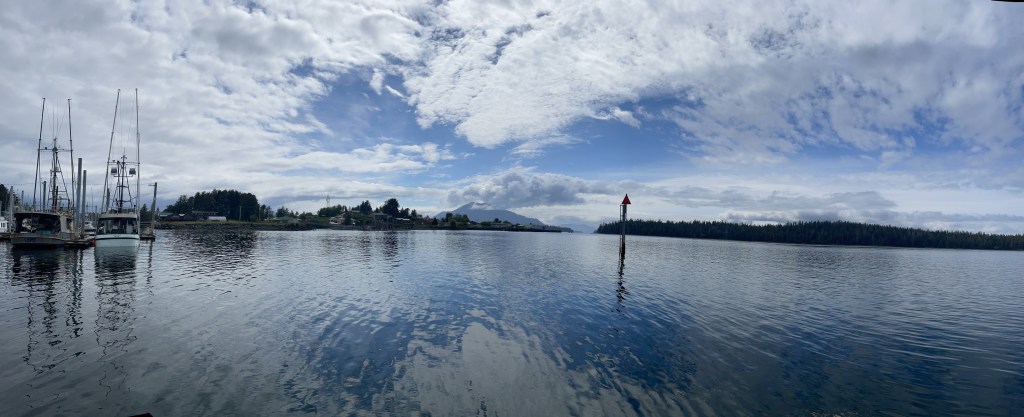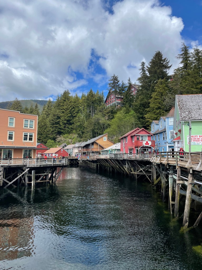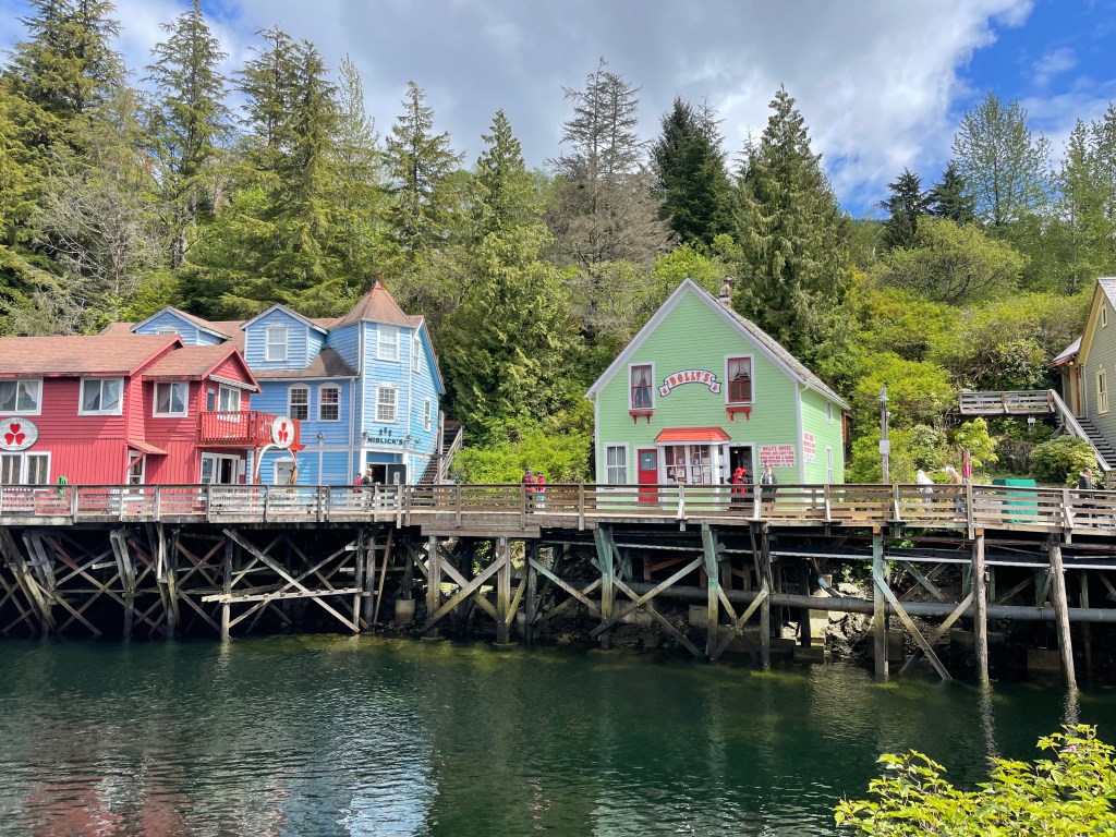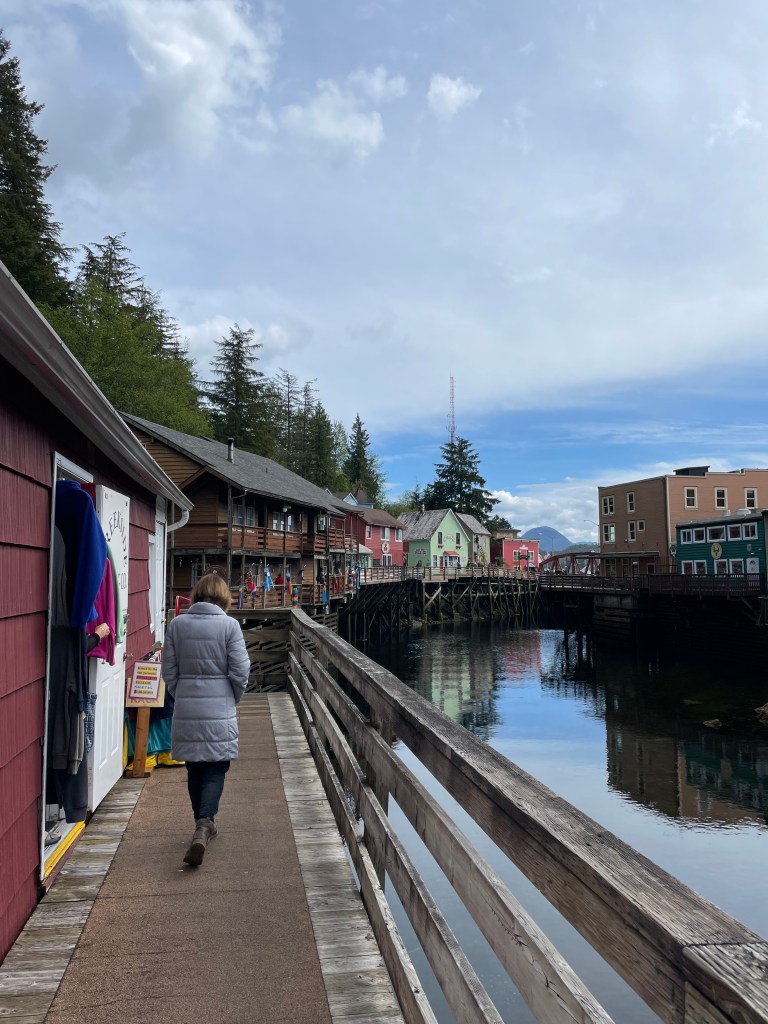 I flew from Charlotte to Seattle, leaving Wednesday morning around 1000. I landed around 1330 and met my Mum who had flown in direct from Heathrow. We boarded our next plane, an Alaskan airlines flight to Ketchikan – a port town on the southern tip of the Archipelago. We landed, picked up luggage and our rental (a Jeep), and drove onto the boat that ferries people from the airport to the main line. We drove to our Air BnB, atop a very steep hill, overlooking one of the bays of Ketchikan, and settled in for our stay in the Black Bear Room.
