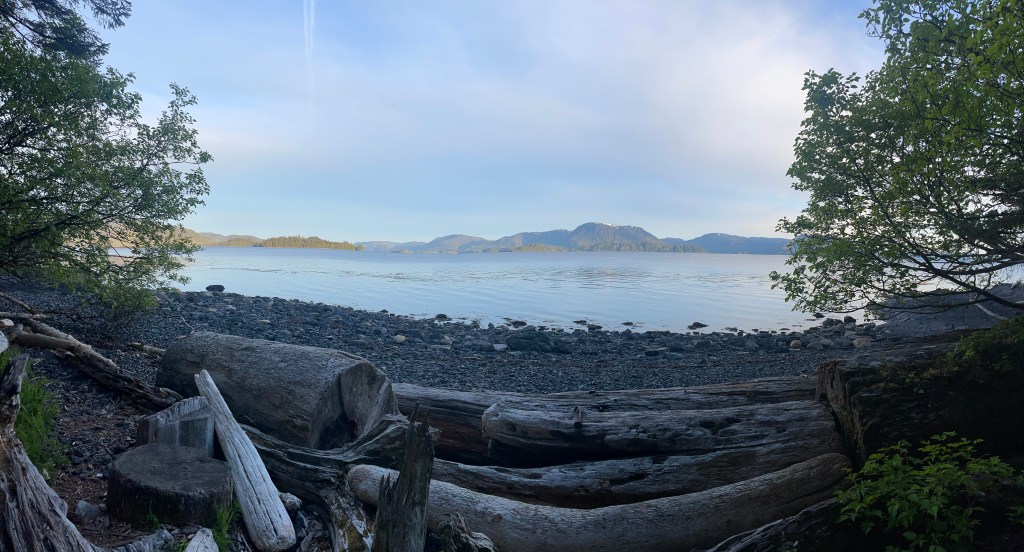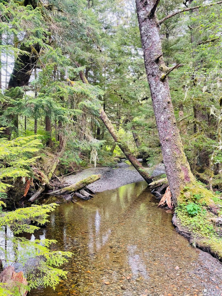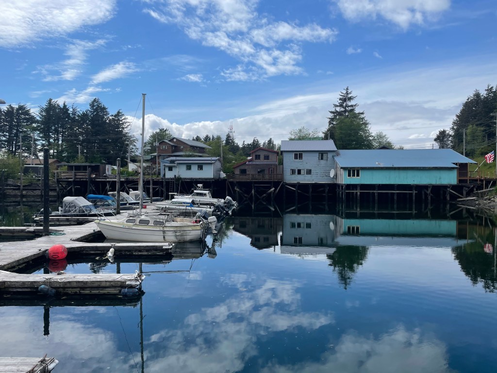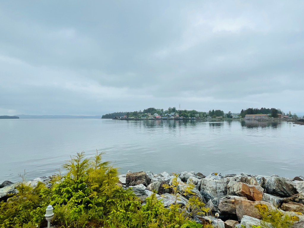 I flew from Charlotte to Seattle, leaving Wednesday morning around 1000. I landed around 1330 and met my Mum who had flown in direct from Heathrow. We boarded our next plane, an Alaskan airlines flight to Ketchikan – a port town on the southern tip of the Archipelago. We landed, picked up luggage and our rental (a Jeep), and drove onto the boat that ferries people from the airport to the main line. We drove to our Air BnB, atop a very steep hill, overlooking one of the bays of Ketchikan, and settled in for our stay in the Black Bear Room.