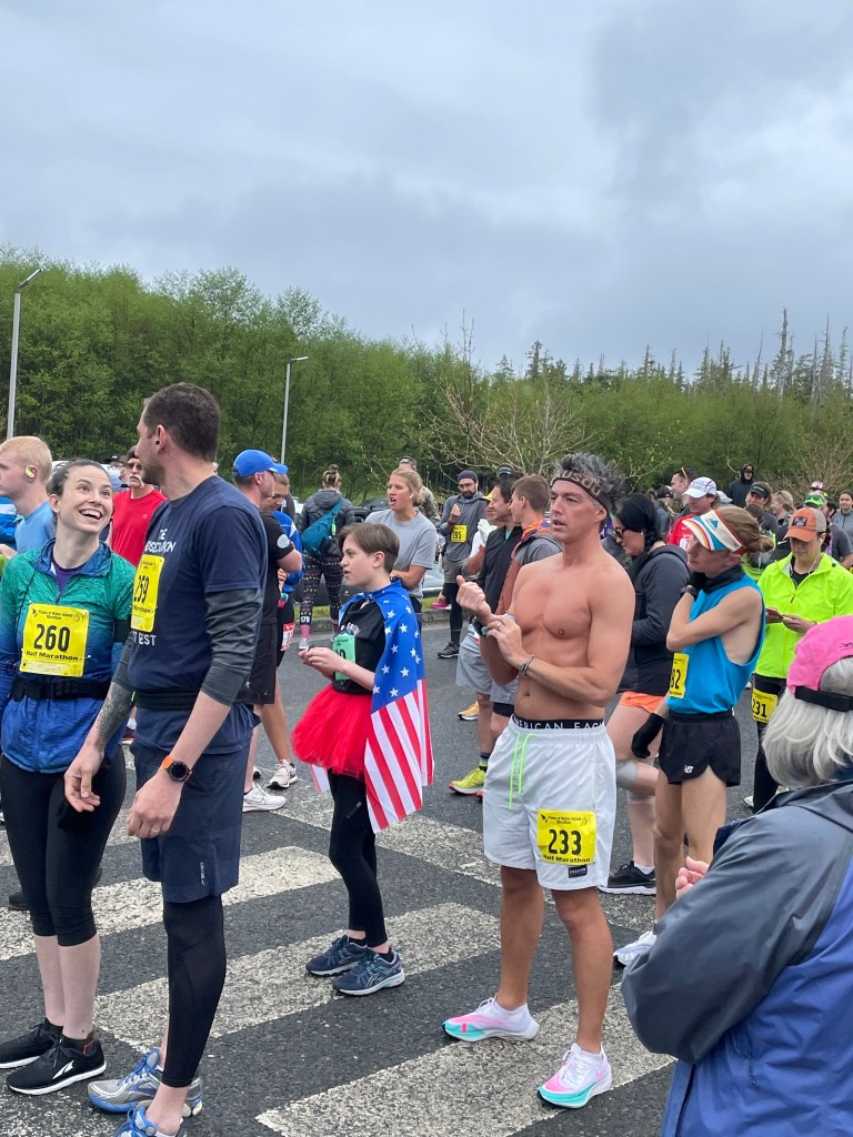 Saturday morning, we rose early and I prepared for the race. We drove to the school for 0730 and the race started at 0800. It was a cloudy day. A lady with ALS, Andrea Peet, was also in town, completing her 50th state, as part of a charitable pursuit of raising awareness for curing this devastating disease of the nervous system. She set off for the marathon at 0750 and we all cheered her on.