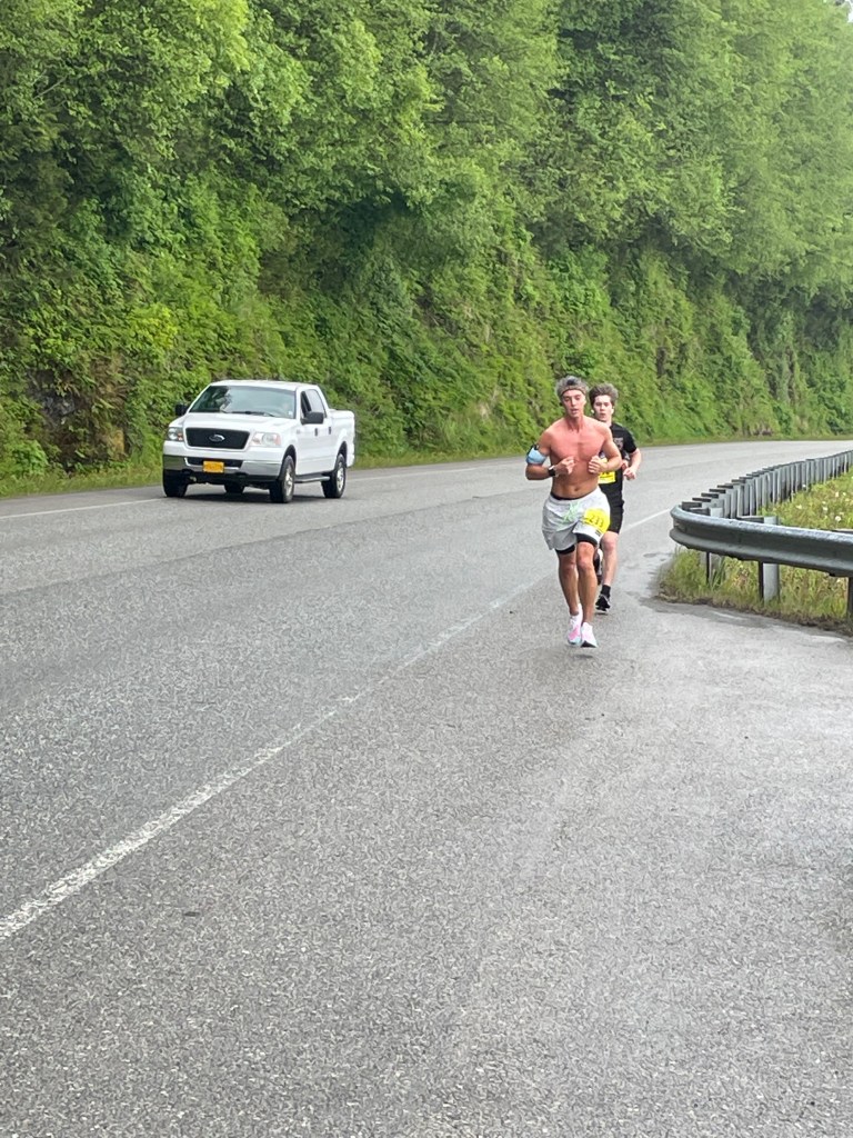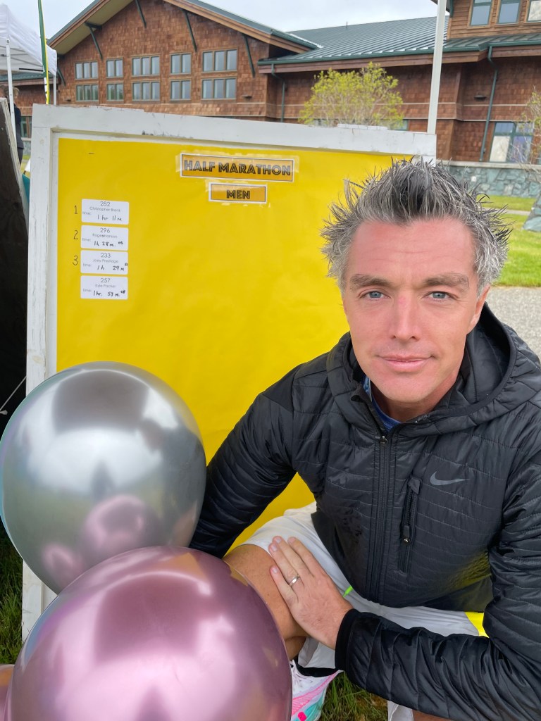 It was an out and back course, and aid stations were regular, well stocked, very supportive and fun. The course was really undulating. Total elevation gain only ended up around 500’ but it seemed like more. It was certainly a tough slog at times, especially having had COVID seven days before, and still recovering; but I got through it and finished third overall, running a 1.28. The local hero finished a minute ahead in the end, having forged a lead after the turn, and I just didn’t have enough in the tank to track him for a race at the finish. I felt bad about that but I gave it my all.