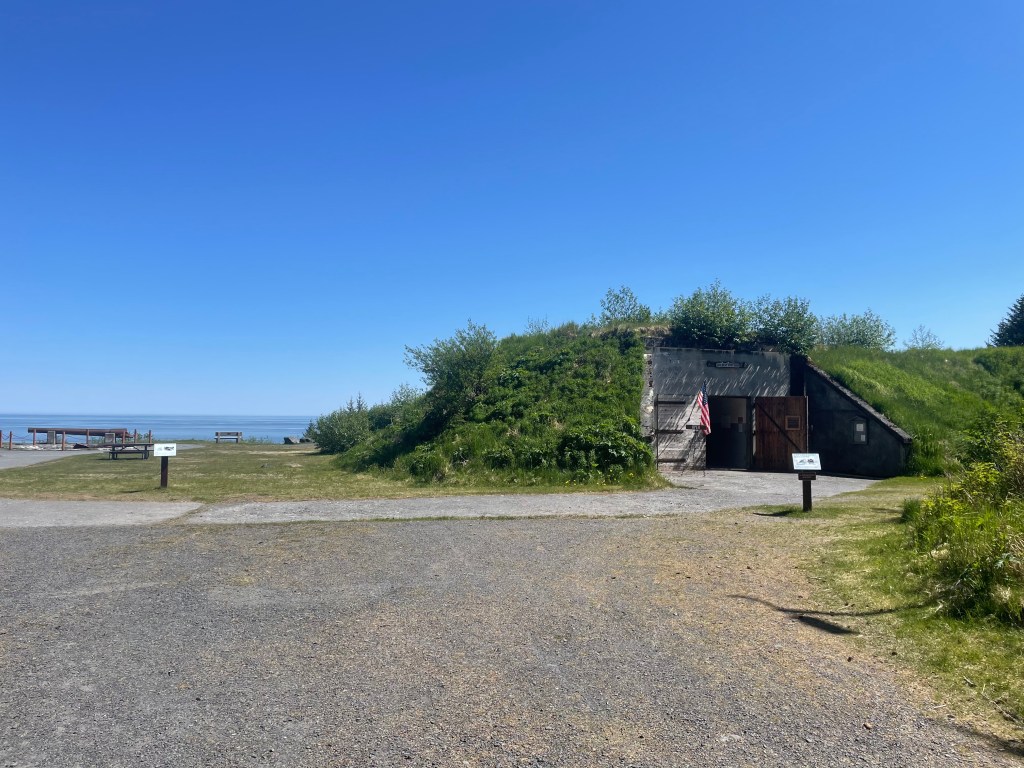 We grabbed a cereal – corn dog breakfast in our apartment, and headed out for the day. We drove to White Sand beach via the taxidermy Kodiak bear at our local police station, then called in to Abercrombie State Park – there was a great Military History Museum there, where I bought a Hitler book. We picked up lunch from Big Al’s then went to look at the Kodiak town historic sites. We enjoyed taking in the Russian Orthodox Church, the Alutiiq Museum, the Kodiak History Museum (which is the oldest building in Alaska, and the oldest Russian building in the US), and the Kodiak National Wildlife Refuge Visitor Center.